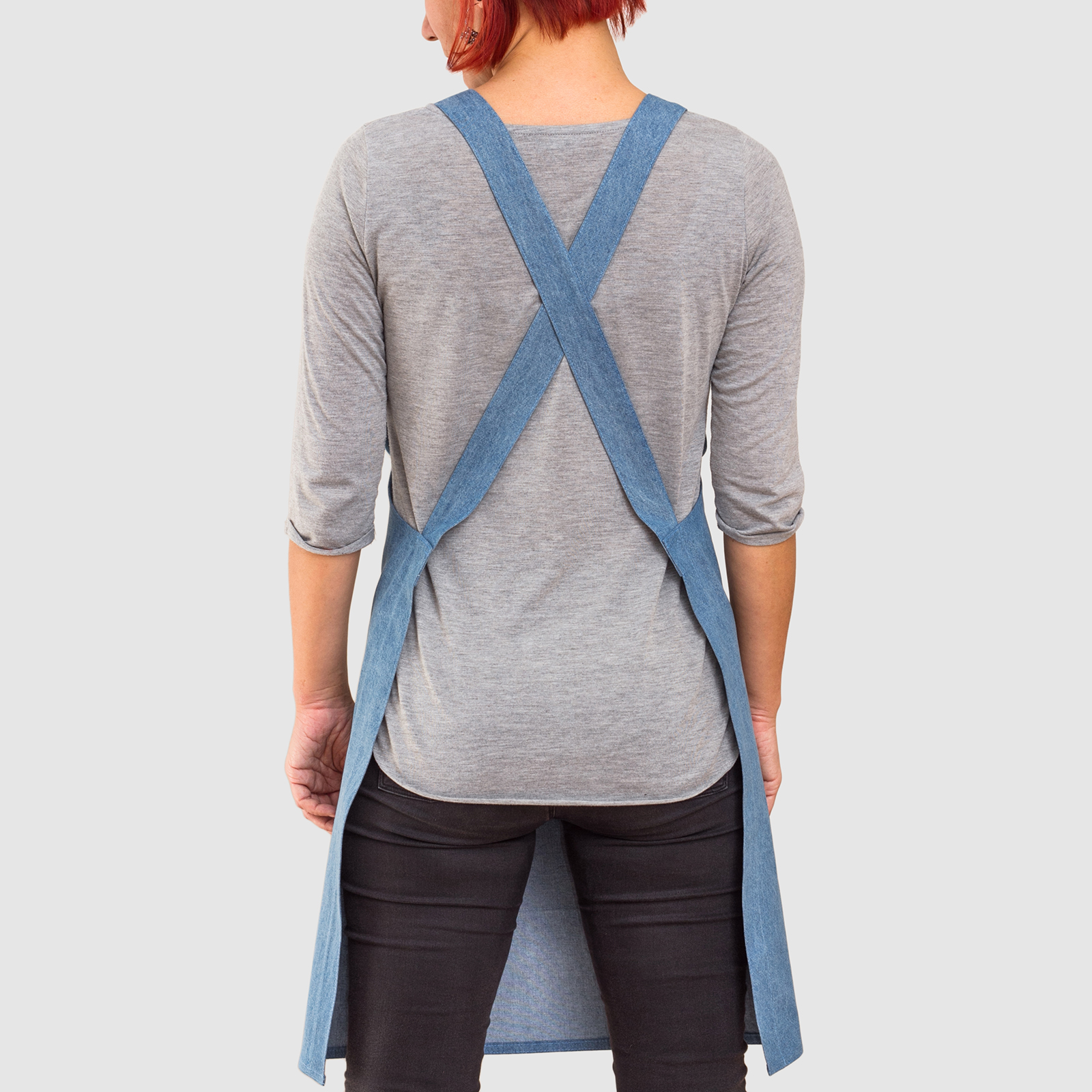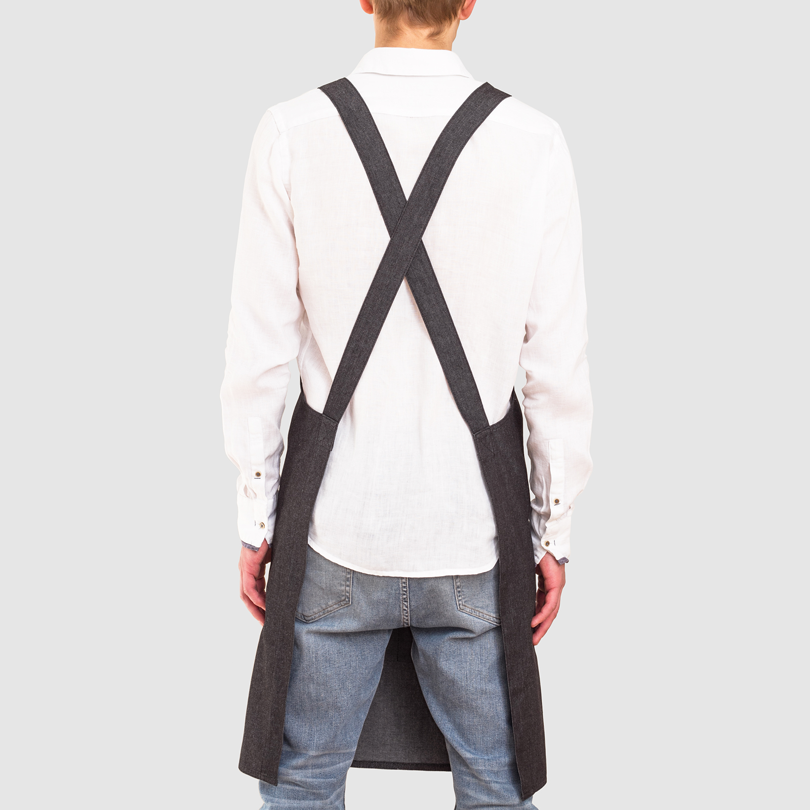 These aprons are made only from lighter fabrics: denim black, denim dark blue, denim light blue. Please specify the required color of the material in the note in the order.
