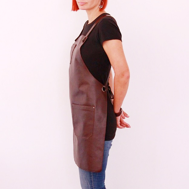 Women's leather apron made of cowhide aniline leather 1.1 mm thick. The apron is sewn around its perimeter.
