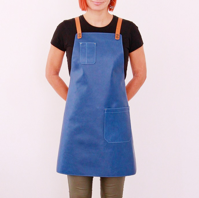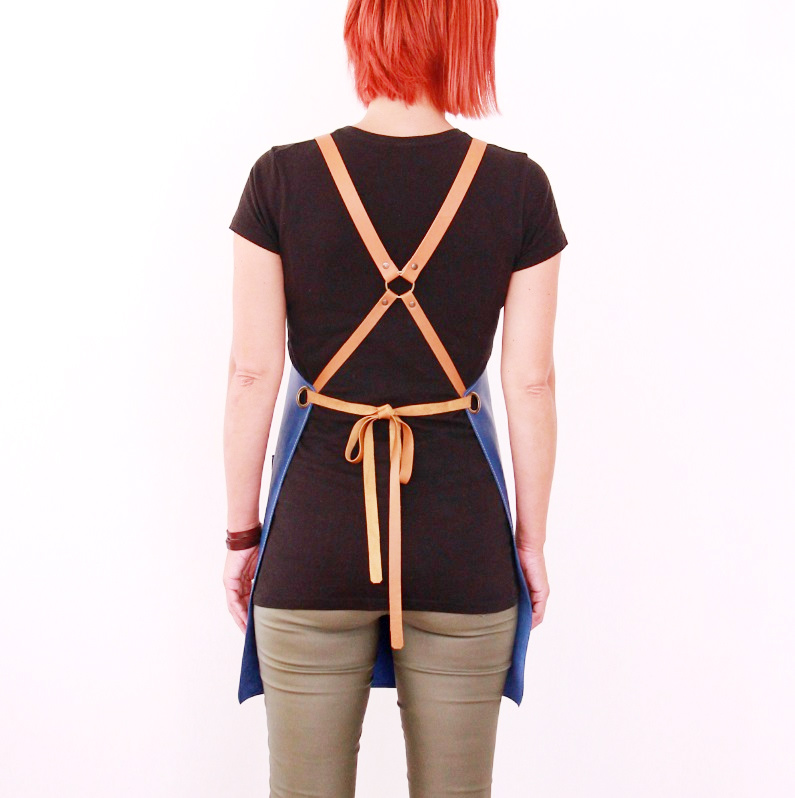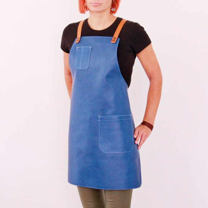 Women's leather apron made of cowhide aniline leather 1.1 mm thick. The apron is sewn around its perimeter.
