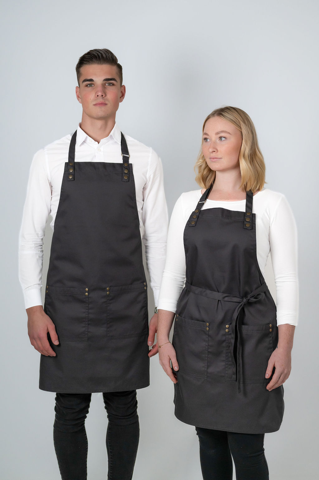 Aprons with leather straps
