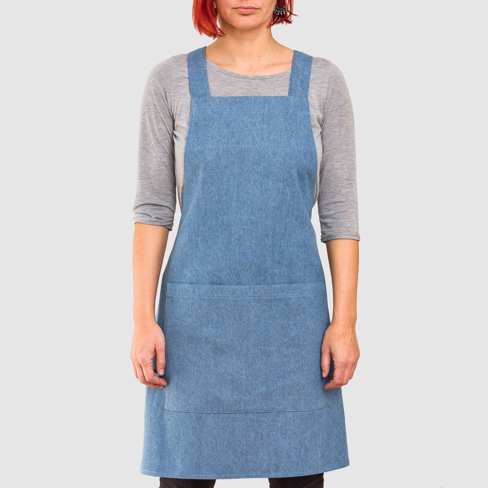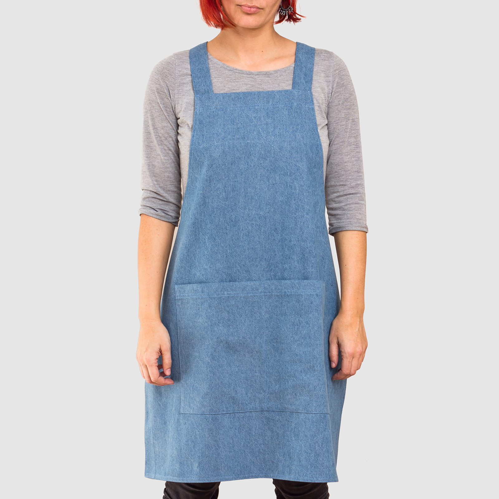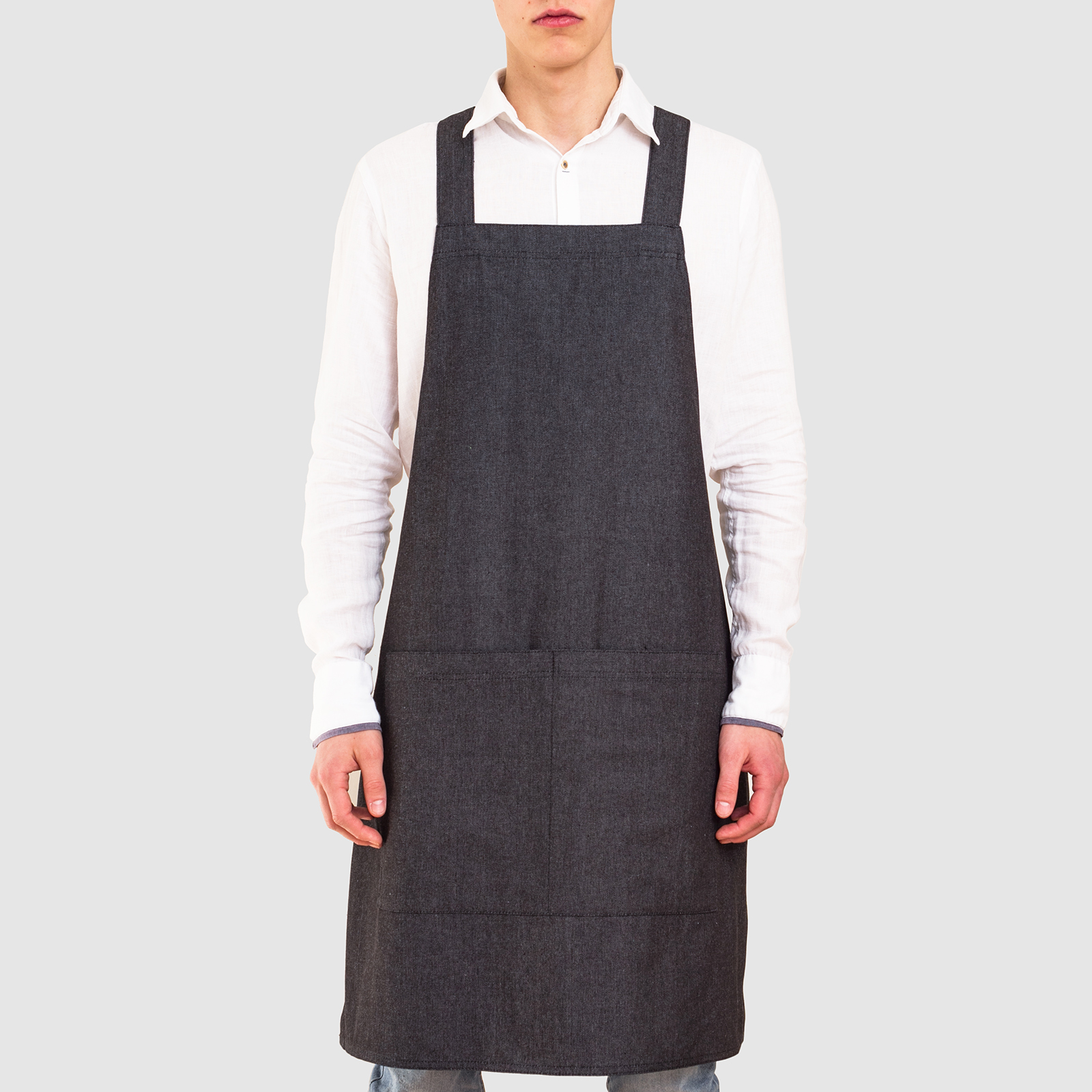 These aprons are made only from lighter fabrics: denim black, denim dark blue, denim light blue. Please specify the required color of the material in the note in the order.