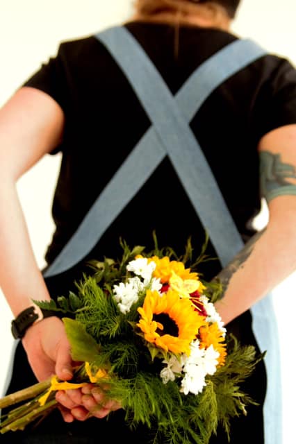 A non-traditional apron in Japanese style. Perfectly suited not only for sushi bars, tea rooms or Asian bistros, but also for florists or vegetarian and vegan businesses. Minimalist, original and yet practical design.