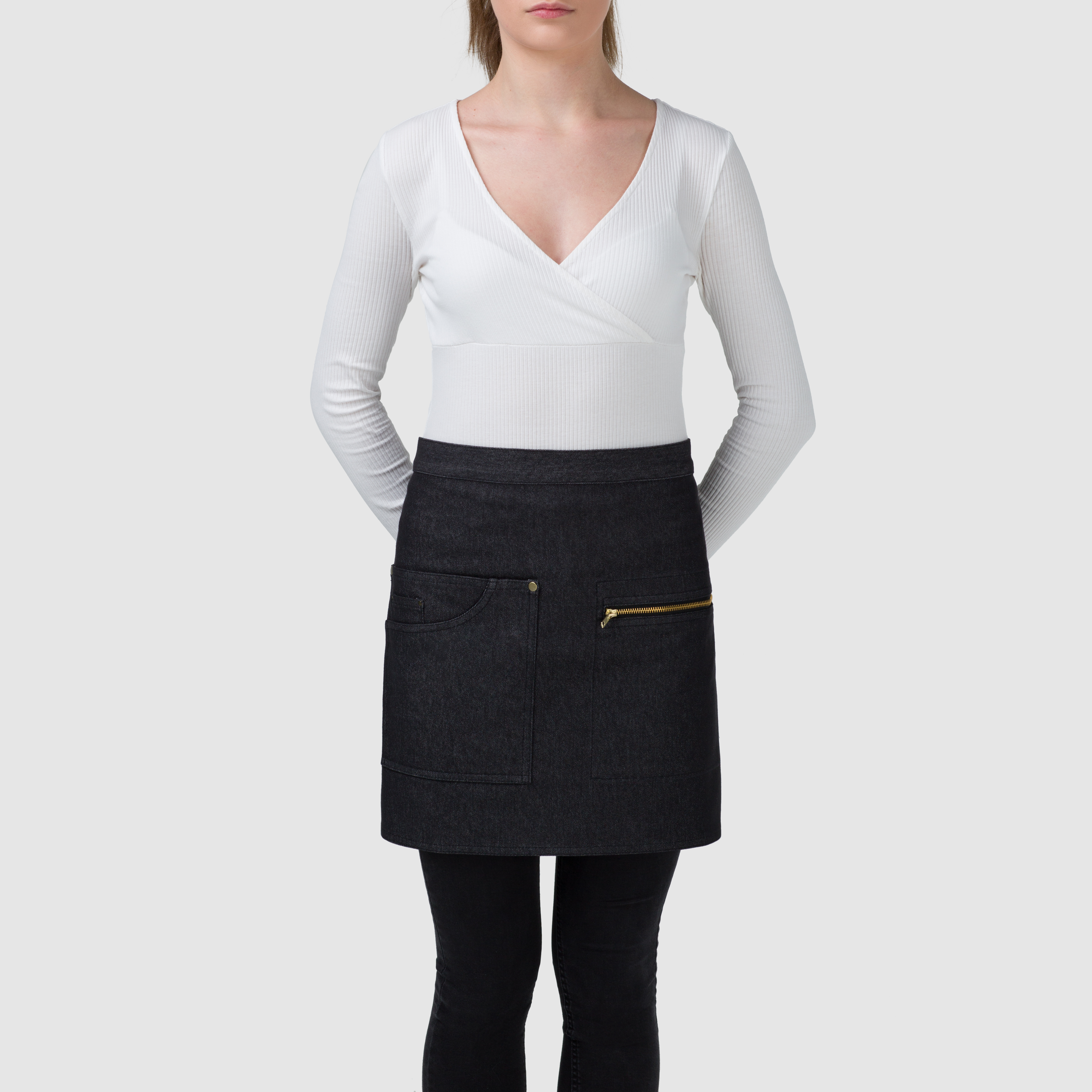 The model in the photo is 170 cm tall, her standard size is S -M and she is wearing an UNI size apron.