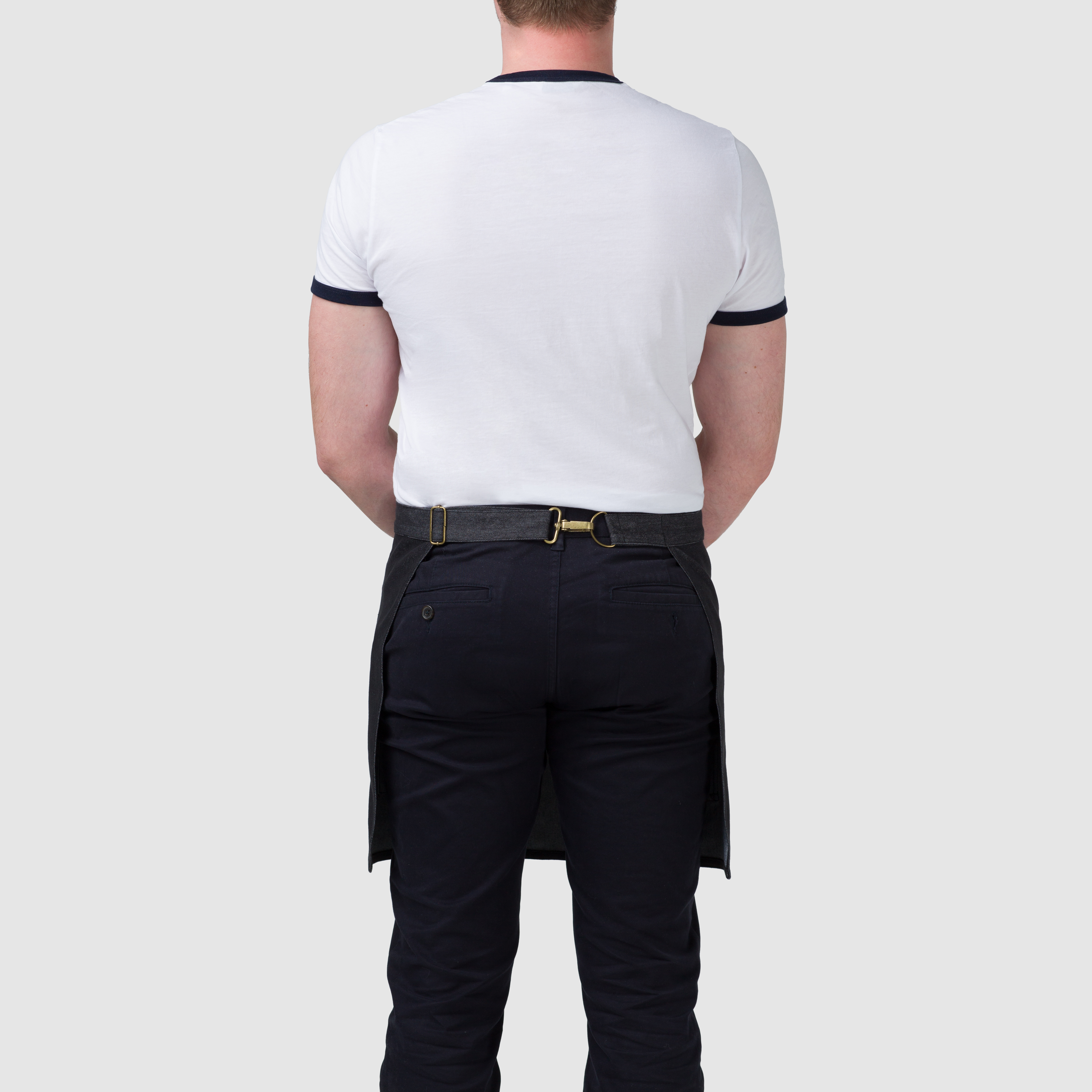 The model in the photo is 178 cm tall, its standard size is L and it is wearing a UNI size apron. The size of the CLASSIC BOY apron would therefore be better for him.