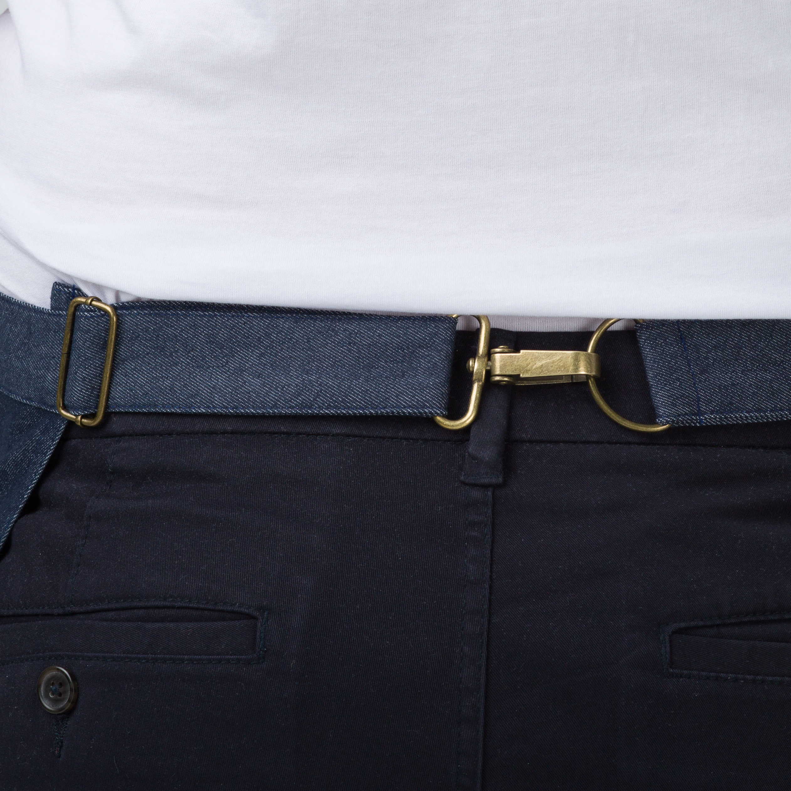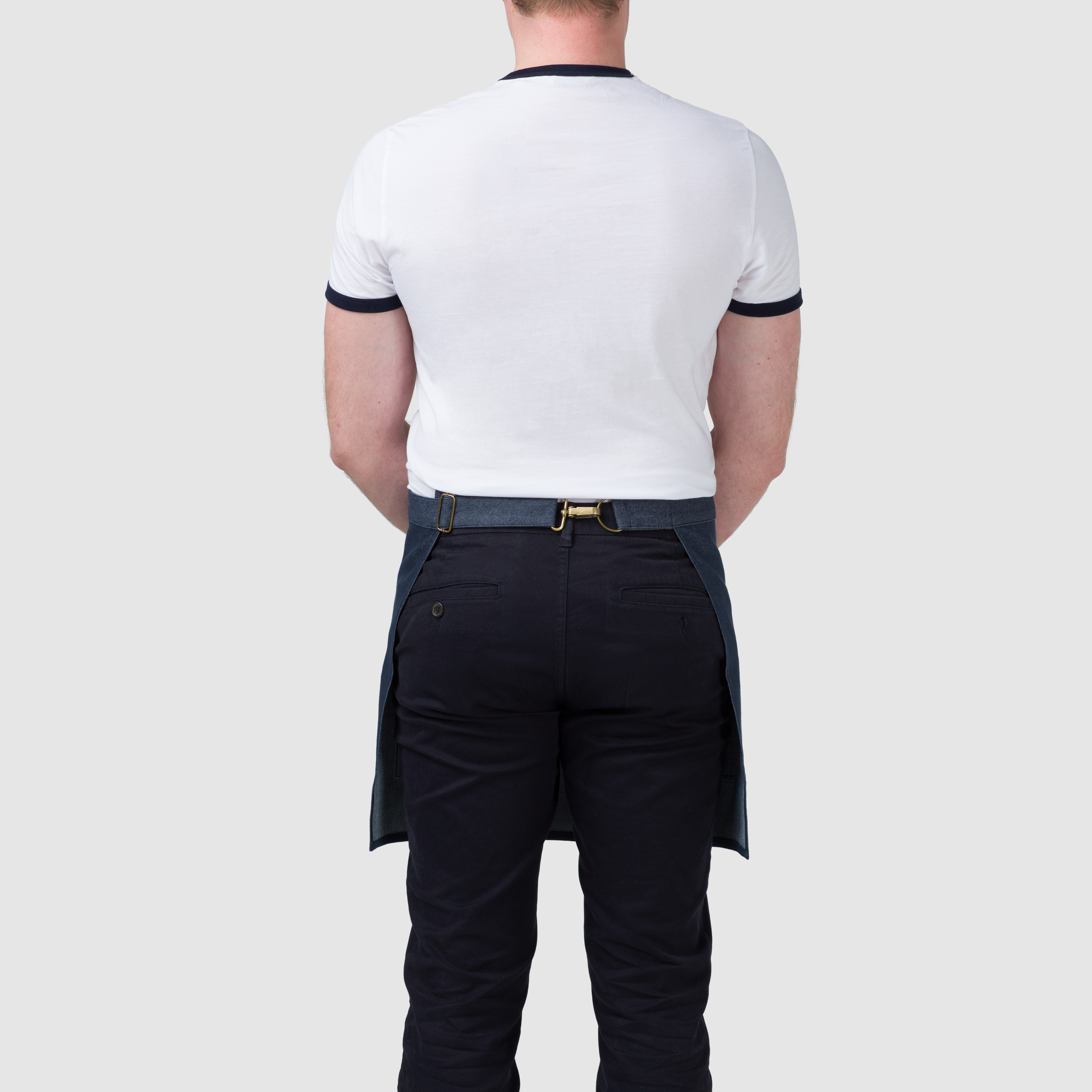 The model in the photo is 178 cm tall, its standard size is L and it is wearing a UNI size apron. The size of the CLASSIC BOY apron would therefore be better for him.