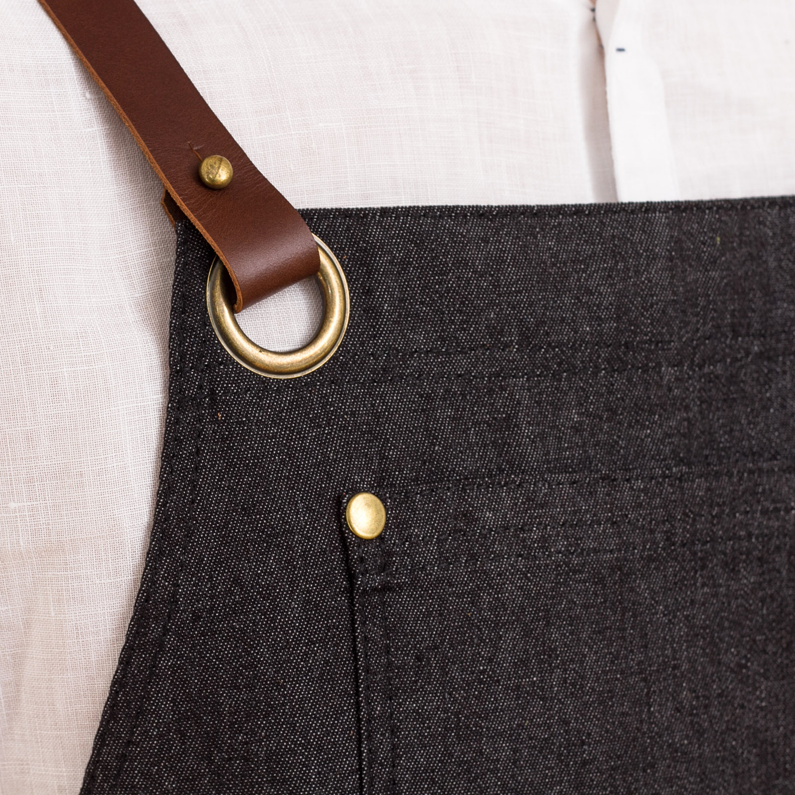 Boy model in the picture is 180 cm high, his standard size is M and he is wearing a Classic size apron.