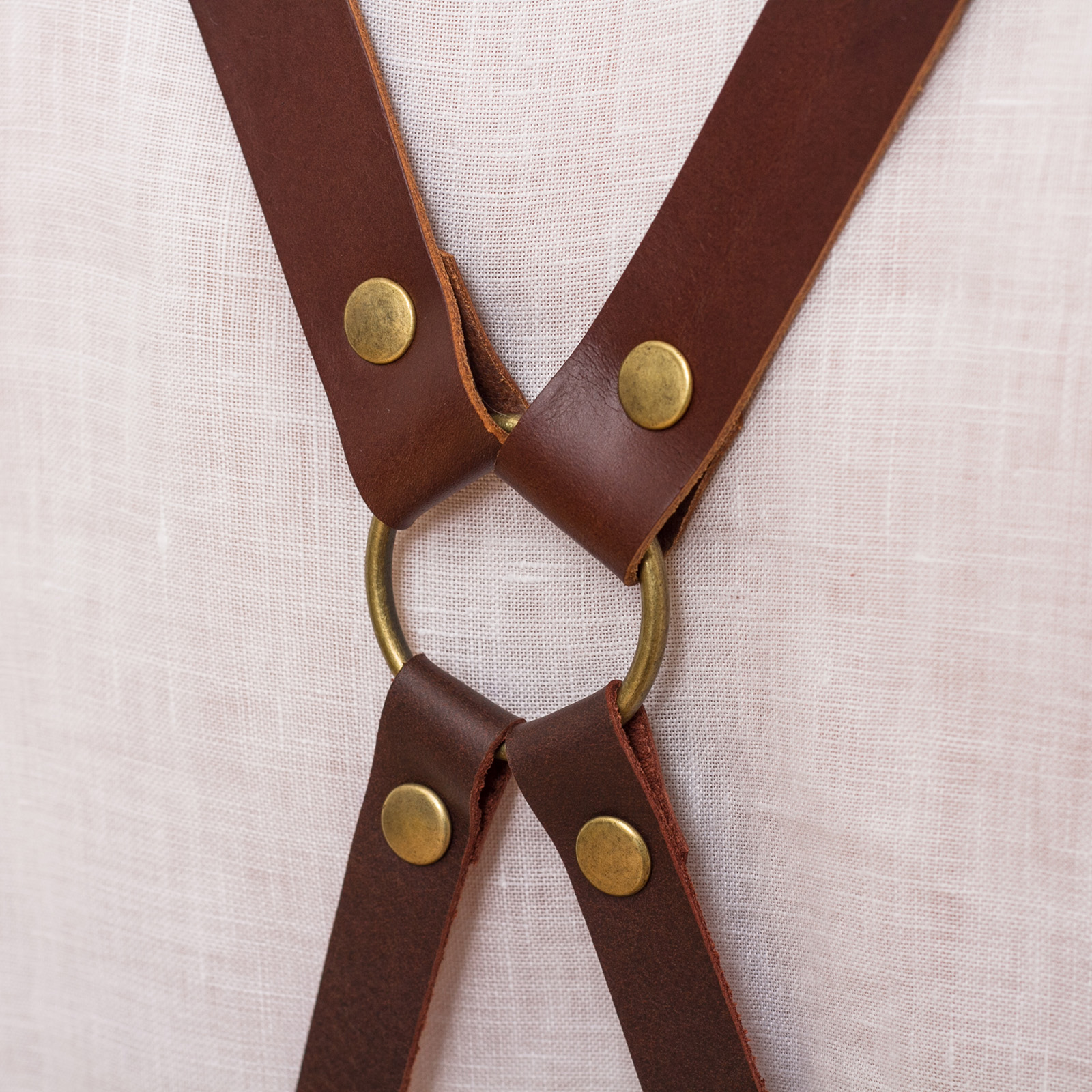 The clamping ring in the middle of the rear prevents the straps from falling off the shoulders during bending. Practical leather loop is perfect for towel or just for a design. Pocket on the side for indispensable little things. The pockets are reinforced with rivets against pulling out of the cloth.