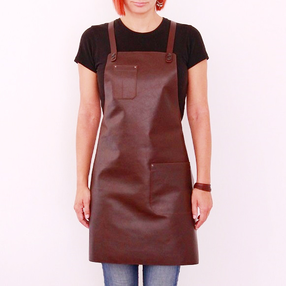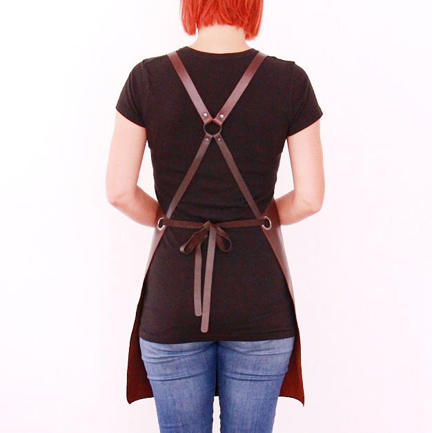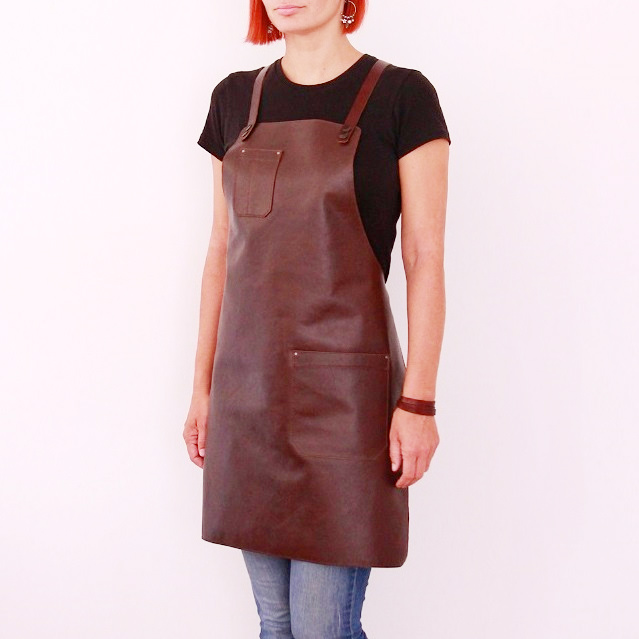 Women's leather apron made of cowhide aniline leather 1.1 mm thick. The apron is sewn around its perimeter.