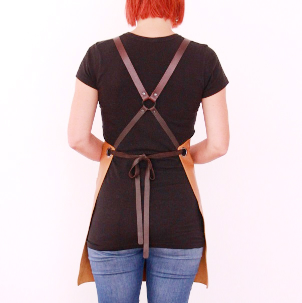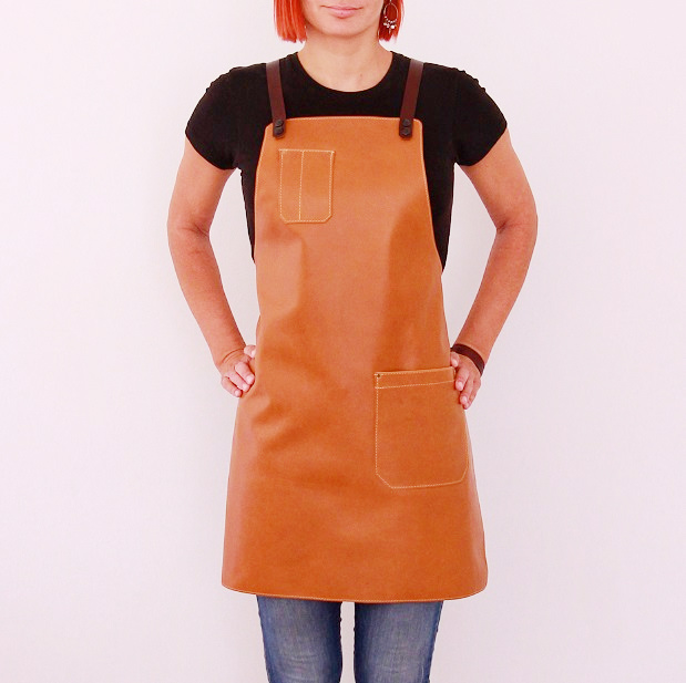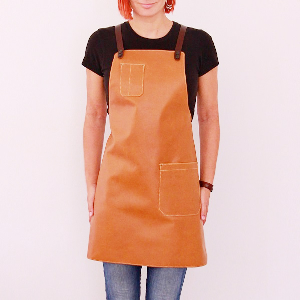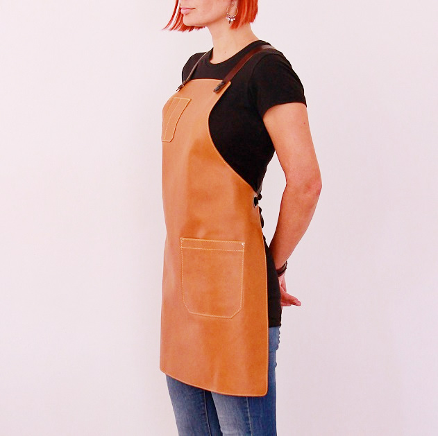 Women's leather apron made of cowhide aniline leather 1.1 mm thick. The apron is sewn around its perimeter.