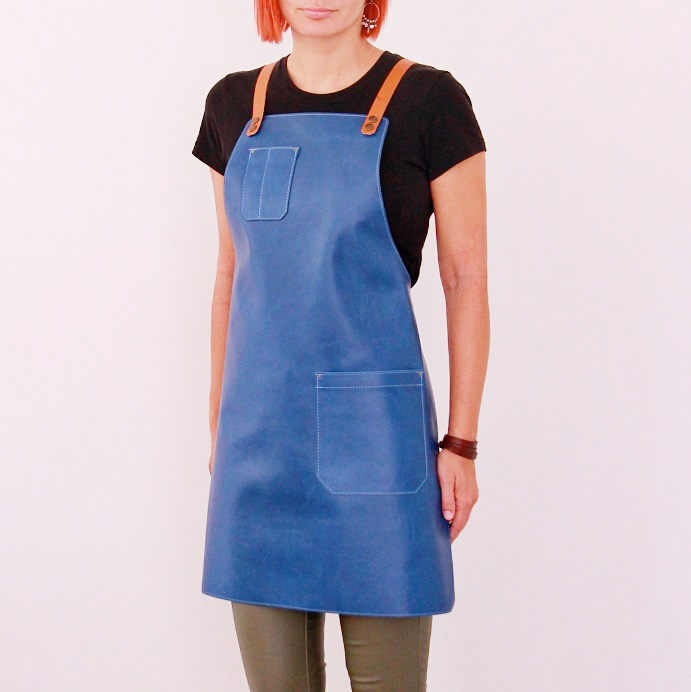 Women's leather apron made of cowhide aniline leather 1.1 mm thick. The apron is sewn around its perimeter.
